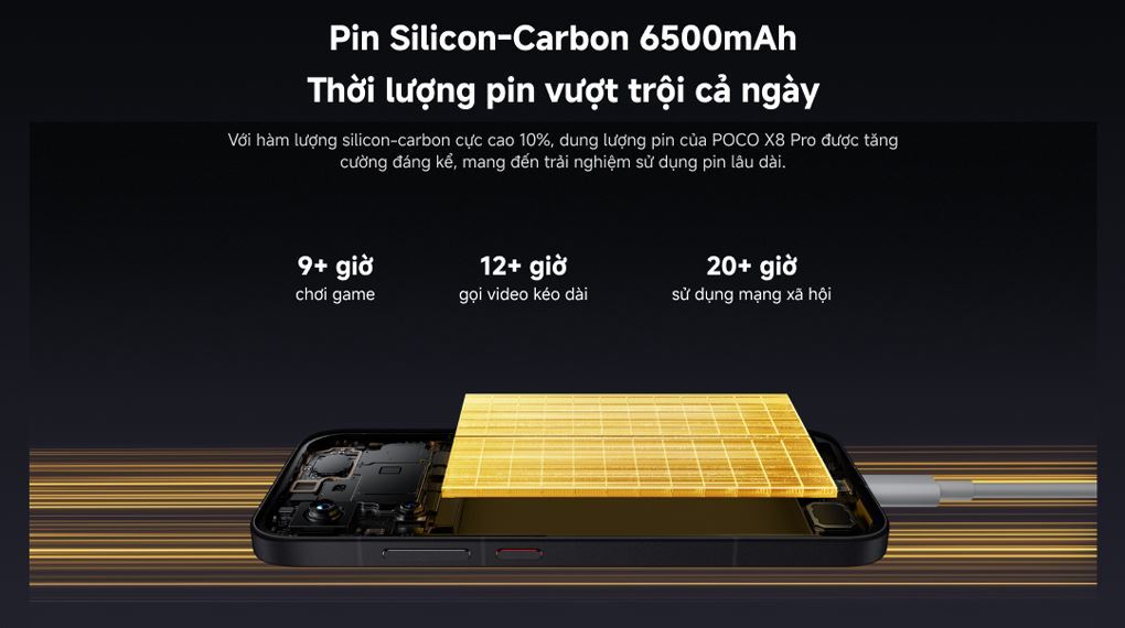 Dù thân máy mỏng nhẹ nhưng Poco đã nhồi nhét thành công viên pin 6.500 mAh.