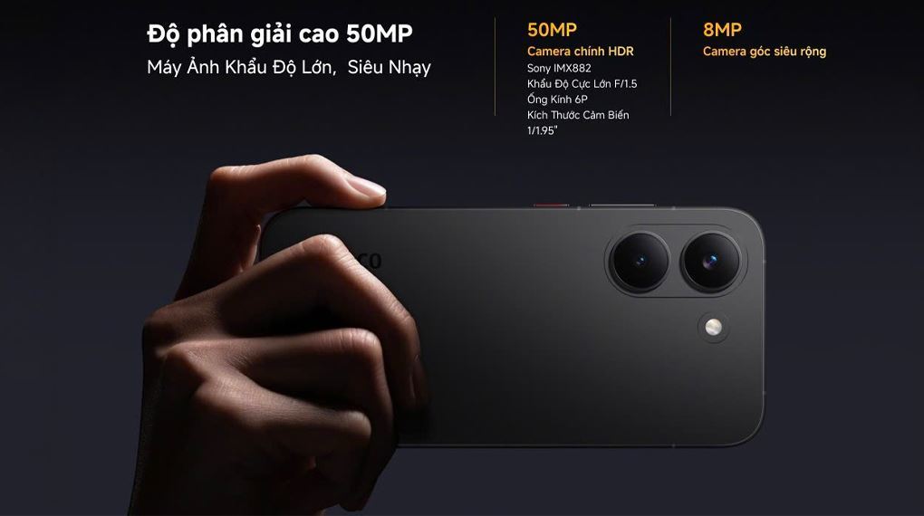 Trong tầm giá 8 triệu, rất khó để tìm được một chiếc máy có camera chính 50MP (Sony IMX882) hỗ trợ chống rung quang học OIS.